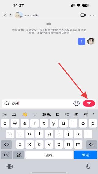 4、在輸入框中輸入你想說(shuō)的內(nèi)容,點(diǎn)擊發(fā)送按鈕即可。
