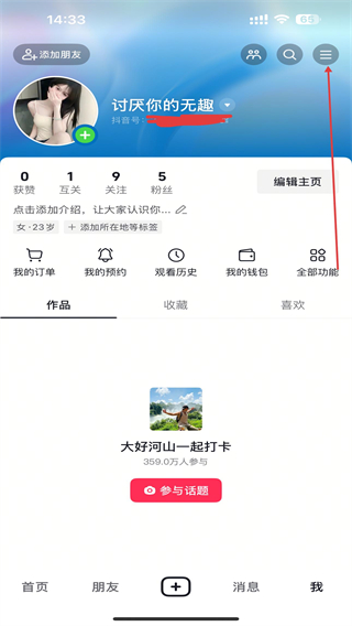 2、進(jìn)入主頁(yè)內(nèi),點(diǎn)擊右上三個(gè)橫線的圖標(biāo)。