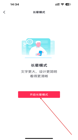 5、進(jìn)入長(zhǎng)輩模式的界面內(nèi),點(diǎn)擊開啟長(zhǎng)輩模式即可。
