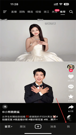 1、打開抖音的應(yīng)用,在首頁(yè)右下角點(diǎn)擊我。