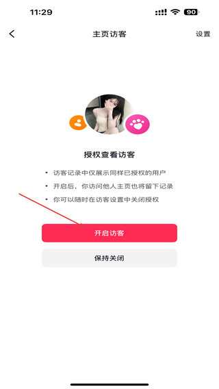 3、進(jìn)入主頁(yè)訪客的界面內(nèi),點(diǎn)擊開啟訪客即可查看。