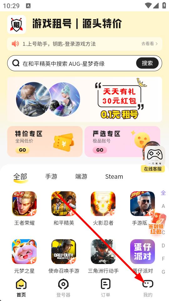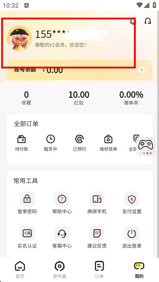 1、打開一元租號app,點擊底部導航欄中的我的。