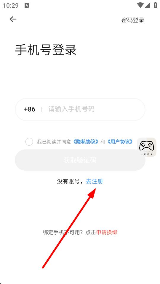 2、在登錄界面點擊沒有賬號,去注冊。