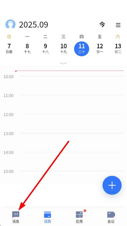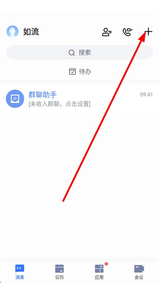2、在消息界面右上角,點(diǎn)擊+號圖標(biāo)。