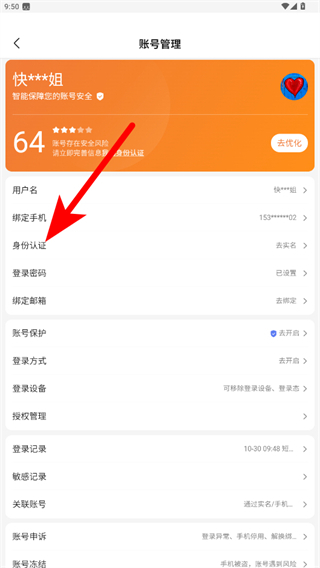 5、進(jìn)入賬號管理頁面后,點(diǎn)擊身份認(rèn)證選項,按照提示完成實名認(rèn)證操作即可。