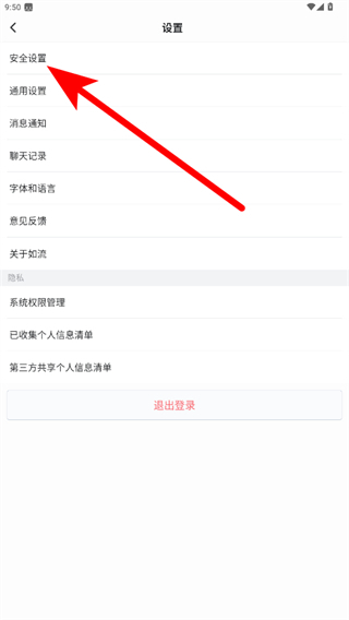 3、進(jìn)入設(shè)置頁面后,點(diǎn)擊安全設(shè)置選項。