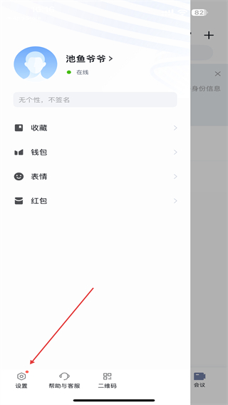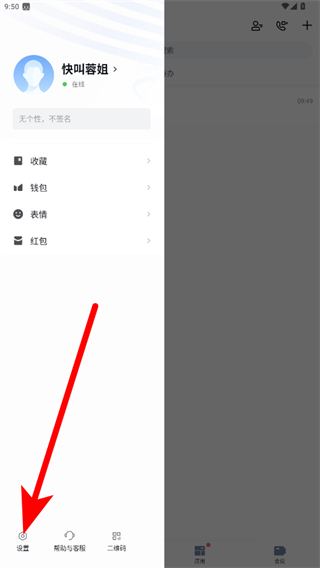2、在彈出的側(cè)邊欄中,點(diǎn)擊左下角的設(shè)置選項。