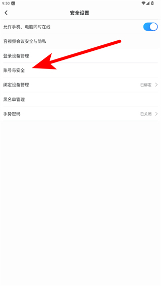 4、在安全設(shè)置頁面中,點(diǎn)擊賬號與安全選項。