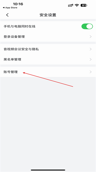 4、在安全設(shè)置的界面內(nèi),點(diǎn)擊賬號管理的按鈕。