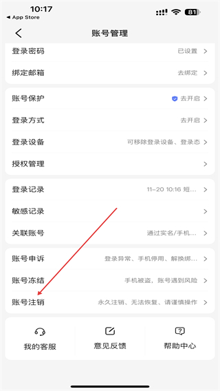 5、進(jìn)入到該頁面內(nèi),滑到最下方點(diǎn)擊賬號注銷即可。