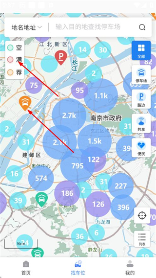 2、在找車位地圖界面中,可通過(guò)左側(cè)標(biāo)識(shí)查看停車場(chǎng)空、滿狀態(tài),點(diǎn)擊地圖上的停車場(chǎng)標(biāo)識(shí)。