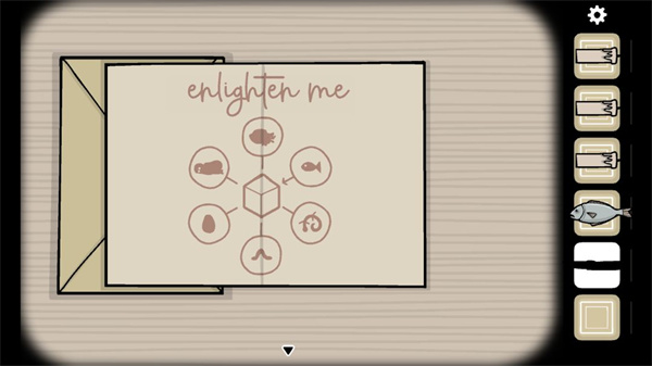 4、用小刀劃開(kāi)有電話的桌子上放著的信封,打開(kāi)里面的紙,紙上有一行“enlighten me”;