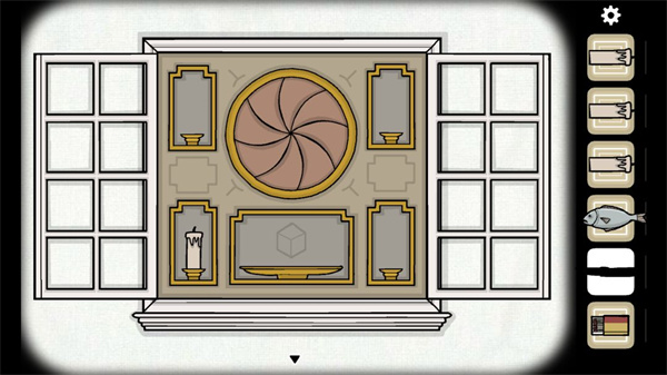6、打開(kāi)另一面墻上的窗,用小刀劃開(kāi)畫,就會(huì)出現(xiàn)下面的這個(gè)東西,是整個(gè)游戲的中心線;