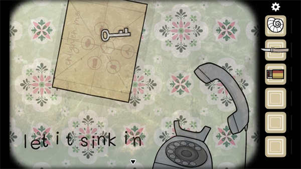 11、出來(lái)了一串英文“l(fā)et it sink in"和一艘紙船,點(diǎn)開(kāi)紙船里面有一把鑰匙。