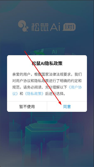1、打開松鼠AI app,在彈出的提示框中點擊同意選項。