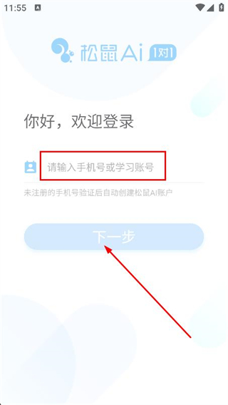 2、在登錄頁面,輸入手機號或?qū)W習(xí)賬號,點擊下一步。