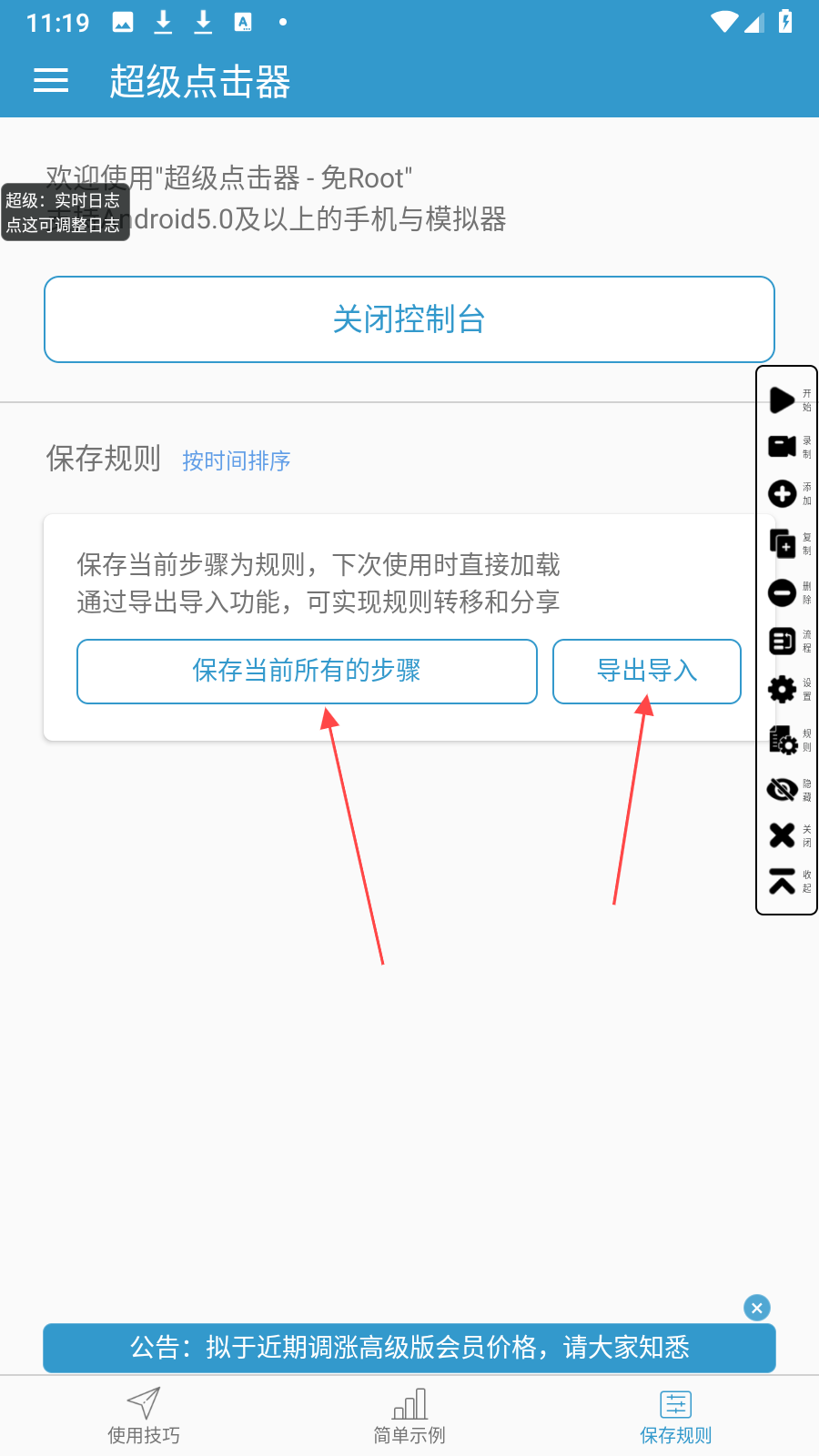 3、保存和分享規(guī)則上,完成操作步驟設定后,點擊保存當前所有的步驟,可將當前步驟保存為規(guī)則,下次直接加載使用,點擊導出導入,能實現(xiàn)規(guī)則轉移和分享。