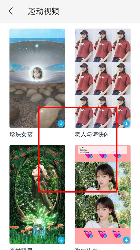 2、在趣動(dòng)視頻頁面中,瀏覽眾多視頻模板,選擇如老人與海快閃等自己喜歡的模板。