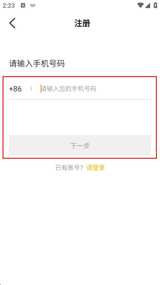 3、在注冊(cè)頁面,輸入手機(jī)號(hào)碼,點(diǎn)擊“下一步”,進(jìn)入驗(yàn)證頁面。