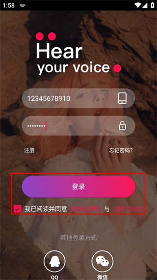 4、勾選已閱讀并同意隱私政策與用戶協(xié)議后點擊“登錄”按鈕,完成登錄操作。