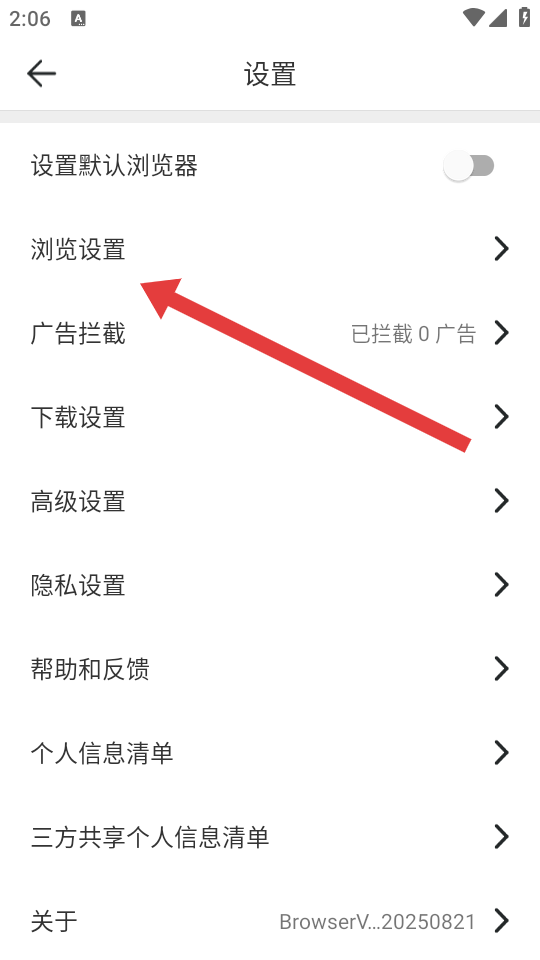 1、進入微米瀏覽器設(shè)置頁面后,點擊瀏覽設(shè)置的選項,進入瀏覽設(shè)置界面。