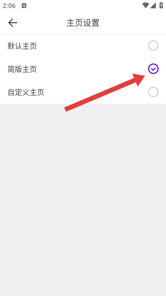 3、在主頁設(shè)置頁面里,點擊簡版主頁右側(cè)的圓形選擇按鈕,即可將瀏覽器主頁設(shè)置為精簡版。