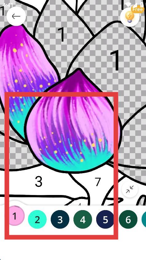 2、按照圖案下方的數(shù)字對應(yīng)顏色,點(diǎn)擊相應(yīng)區(qū)域完成填色操作。