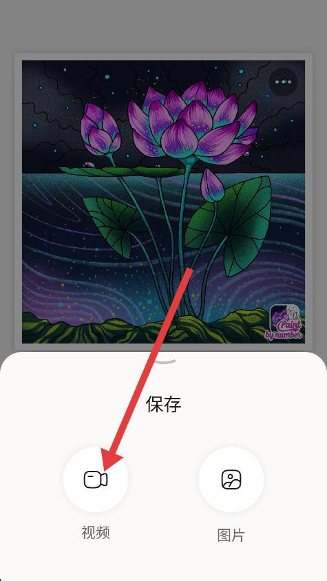4、在彈出的保存方式選擇中,點(diǎn)擊視頻選項(xiàng),即可將繪畫過程保存為視頻。