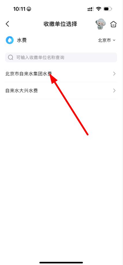 3、在收繳單位選擇頁面,選擇對應的收繳單位,比如北京市自來水集團水費,然后按照后續(xù)提示完成繳費操作。