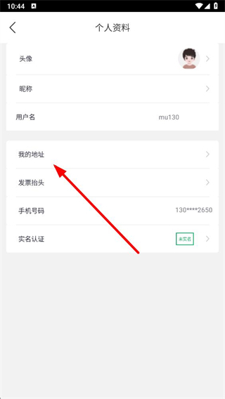 2、進入個人資料頁面后,點擊我的地址選項。