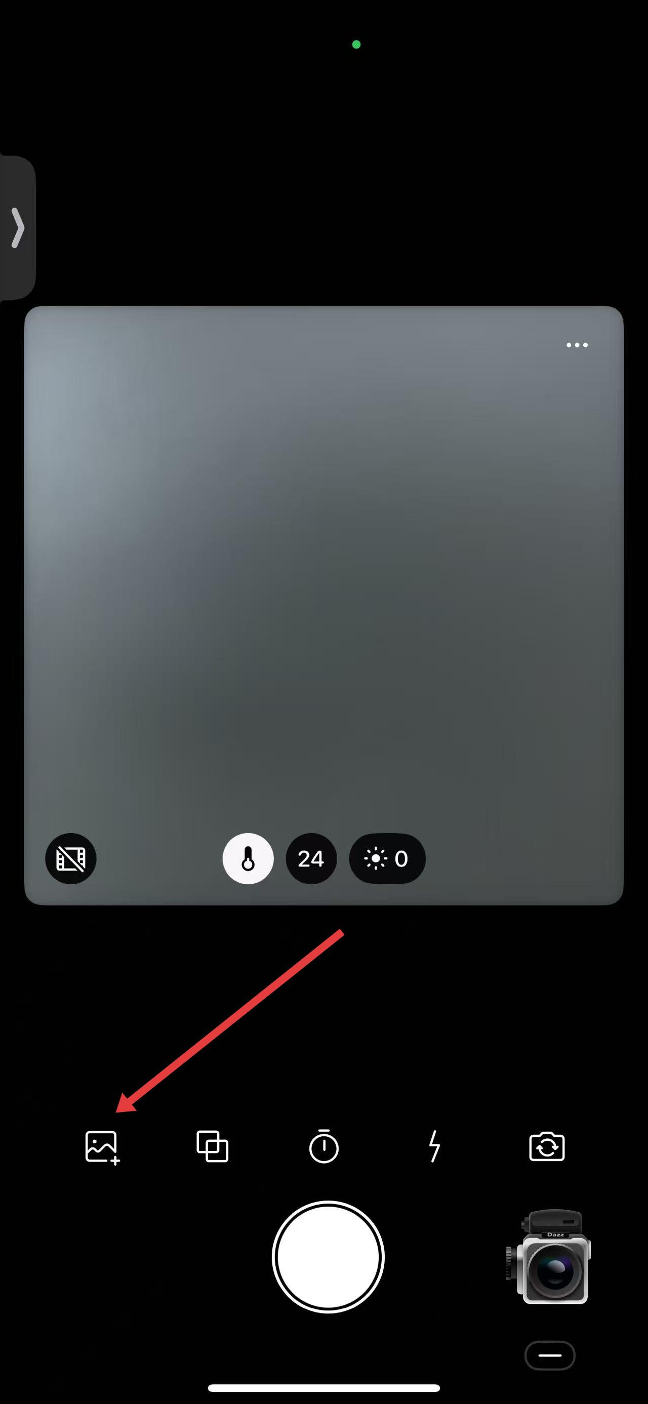 1、打開dazz相機APP,進入拍攝主界面,點擊左下角帶有加號的圖片圖標(biāo)。