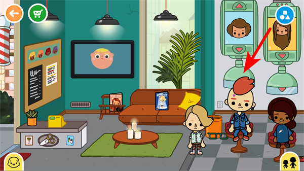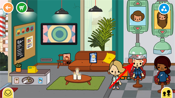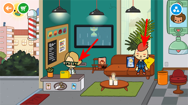 1、在托卡城市小小世界主場景,點擊帶有剪刀標(biāo)志的美發(fā)店建筑,進(jìn)入美發(fā)店場景。