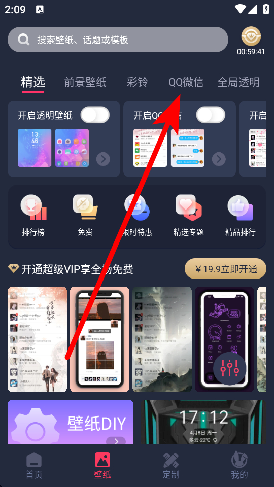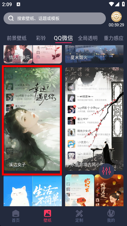 2、在壁紙頁面,點(diǎn)擊QQ微信選項(xiàng),進(jìn)入微信壁紙列表界面。
