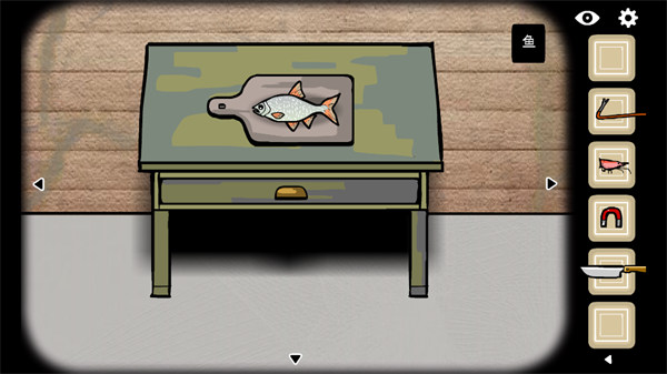 抓上來(lái)一只蝦,取下后來(lái)到初始畫(huà)面,把蝦放在桌子的砧板上,用刀子把蝦切開(kāi),得到鑰匙后取回蝦頭。