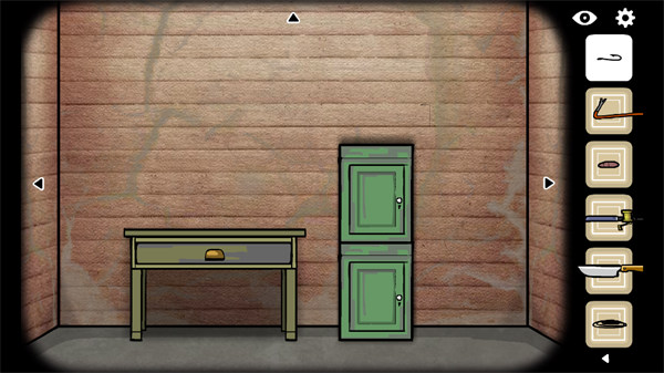 繼續(xù)向右,打開(kāi)下方的柜子,拾取柜子里的撬棍和柜子右邊地板上的鉤子。