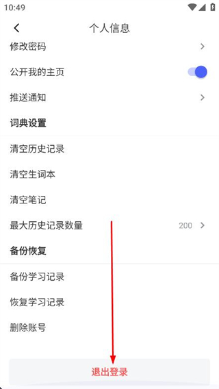 4、在設(shè)置頁面,點擊退出登錄按鈕,即可完成退出登錄操作。