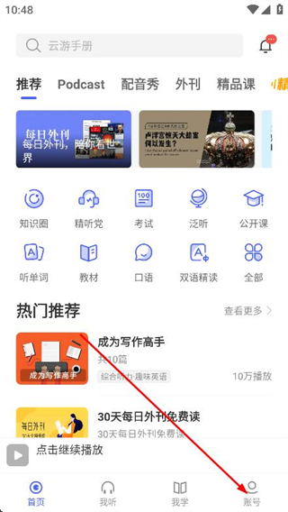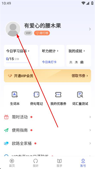 1、打開每日英語聽力app,點擊底部導航欄中的賬號選項。