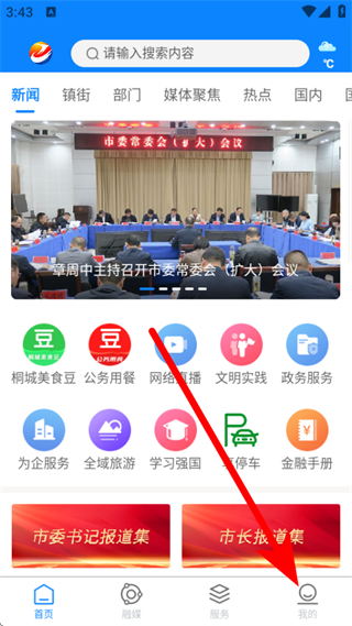 1、在出彩桐城的首頁,需要點(diǎn)擊底部我的按鈕,進(jìn)入個人的頁面。