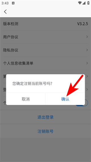 4、在系統(tǒng)的提示框中,我們要點(diǎn)擊確認(rèn),從而完成賬號注銷流程。