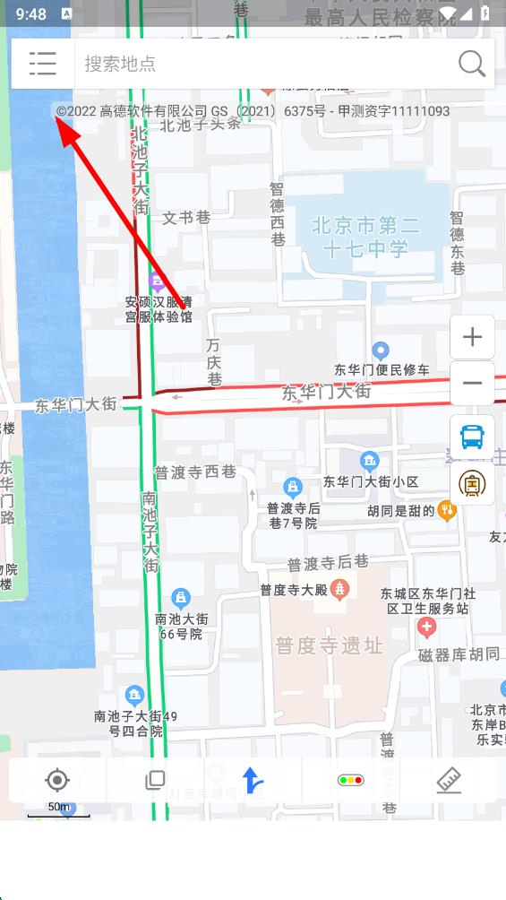 1、打開北斗衛(wèi)星地圖導(dǎo)航應(yīng)用,在主界面點(diǎn)擊左上角的三橫線菜單按鈕,打開側(cè)邊菜單欄。