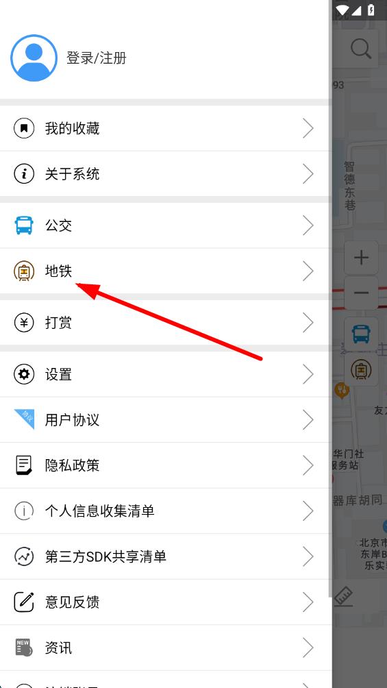 2、在側(cè)邊菜單欄中,找到并點(diǎn)擊地鐵選項(xiàng),進(jìn)入地鐵路線查看界面。