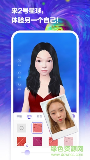 用照片創(chuàng)造和你很像的3d化身,智能美顏,自由捏臉換裝,基于自身形象生成生動(dòng)的動(dòng)作表情,在2號(hào)星球中做最特別的你