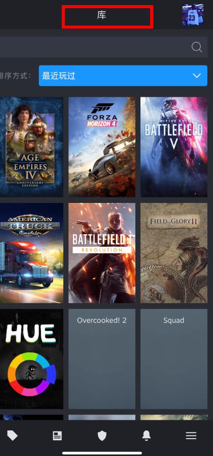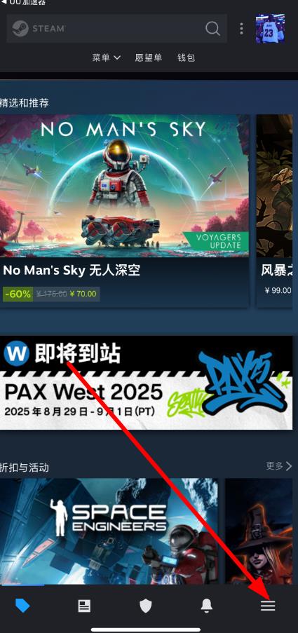 1、打開(kāi)Steam應(yīng)用,點(diǎn)擊底部導(dǎo)航欄最右側(cè)的三橫線圖標(biāo),進(jìn)入相關(guān)頁(yè)面。