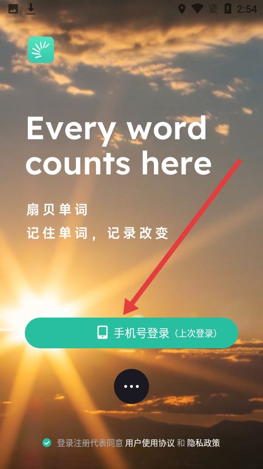 1、打開扇貝單詞app,點擊界面中的手機號登錄按鈕,進行手機號登陸。