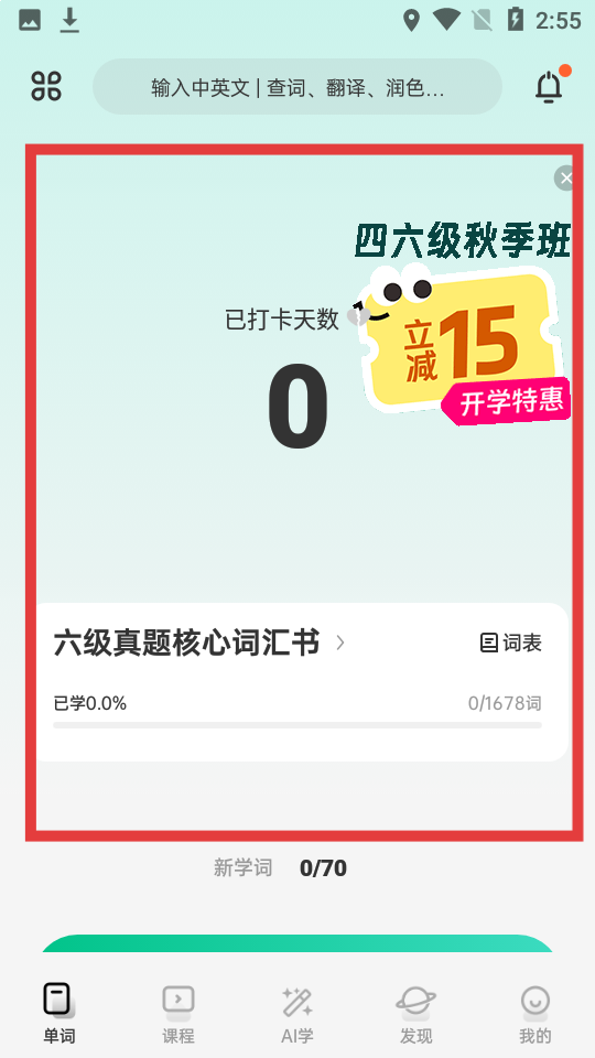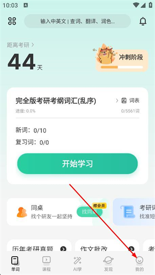 3、登陸完成后,即可成功進入扇貝單詞app主界面,代表登陸操作完成。