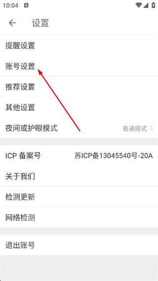 3、進入設置頁面后,點擊上方的賬號設置選項。