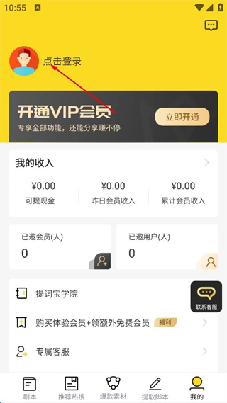 1、打開提詞寶APP,點(diǎn)擊底部導(dǎo)航欄我的選項(xiàng)。