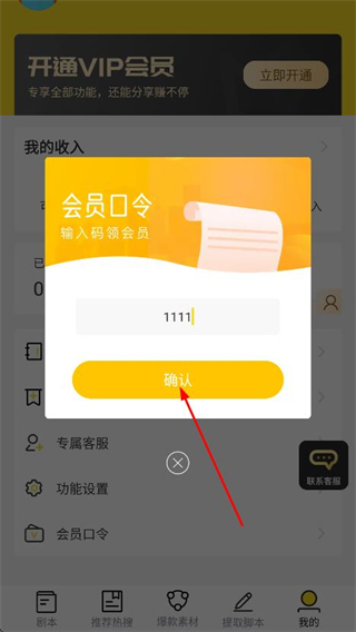 3、在彈窗的輸入框中,填寫對應(yīng)的會員口令碼。