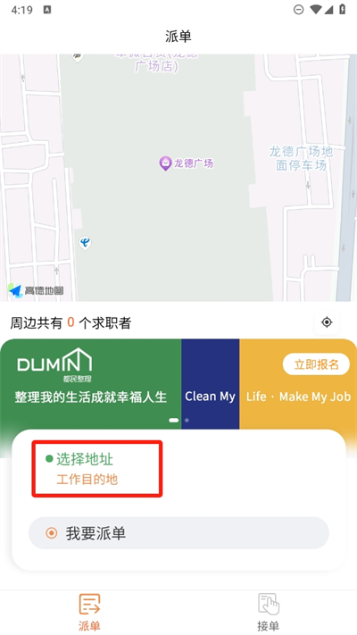 1、進(jìn)入軟件后派單的用戶可以選擇鞏固走的目的地,精準(zhǔn)定位方便大家找尋到正確的工作位置;