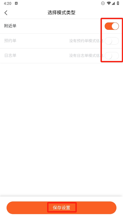 3、在這里可以看到附近接單模式,比如支持查看到預(yù)約單、日志單燈不同模式供各位自由選擇;
